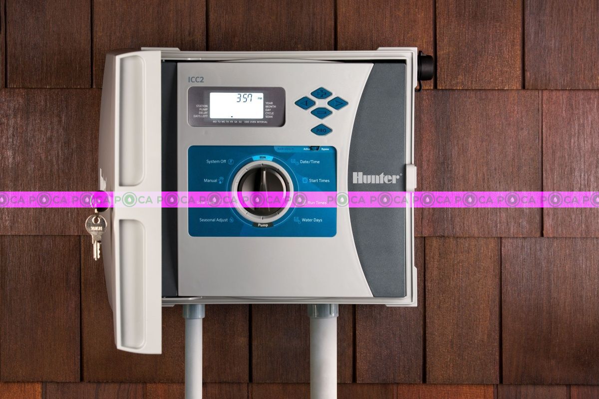 Hunter I2C-800-PL = 8-станционный модульный контроллер полива серии ICC2 с возможностью увеличения кол-ва станций до 54; корпус: пластмассовый для улицы; гарантия: 5 лет.