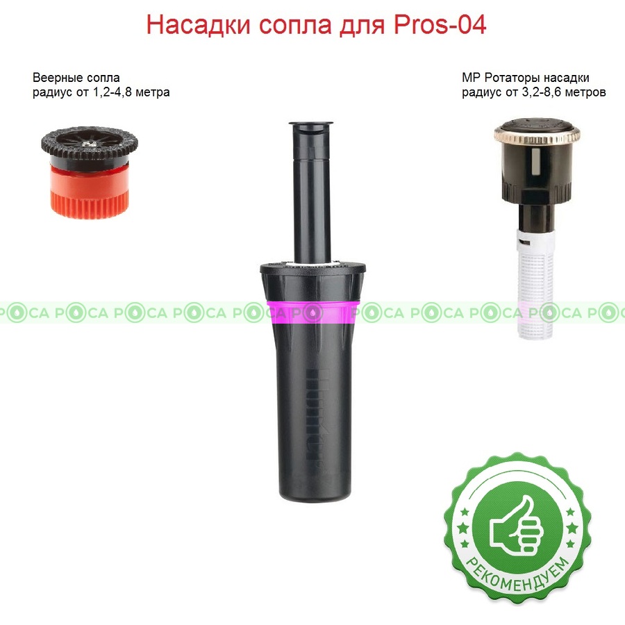 Без сопла. Сопло приобретается отдельно. Совместим со всеми соплами Hunter, RainBird, Irritrol.