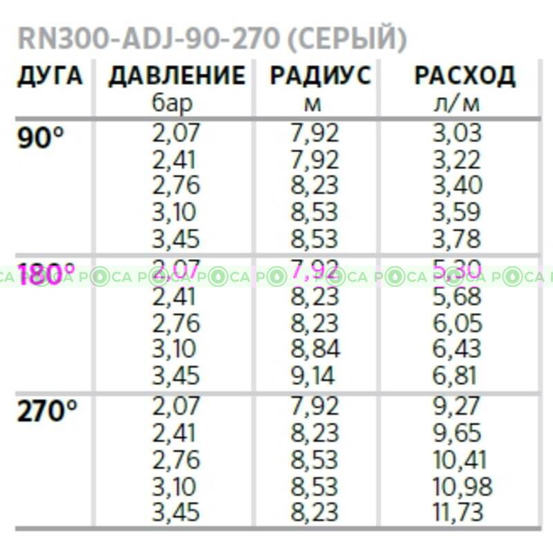 Сектор полива роторных форсунок RN300-ADJ K-RAIN составляет 90 ° - 270 °, что позволяет охватить 80% - 90% всех необходимых настроек сопла!